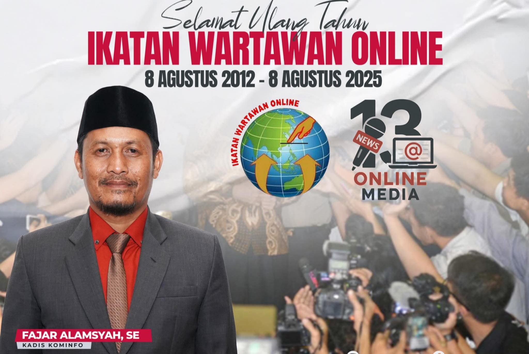 MUARASABAK – Perjalanan panjang Ikatan Wartawan Online (IWO) menapaki usia ke-13 mendapat apresiasi dari Kepala Dinas Komunikasi dan Informatika Kabupaten Tanjung Jabung Timur, Fajar Alamsyah, SE.